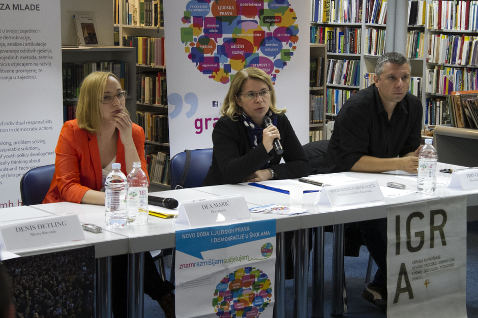 Documenta – centar za suočavanje s prošlošću je, zajedno sa Mrežom mladih Hrvatske, udrugom za pružanje rehabilitacijsko – edukacijske i psiho – socijalno – pedagoške pomoći – IGRA i GONG-om, organizirala u petak 17. svibnja, u knjižnici i čitaonici Bogdana Ogrizovića u Zagrebu, okrugli stol na temu Obrazovanje mladih za budućnost – od učionice do svakodnevnog života.