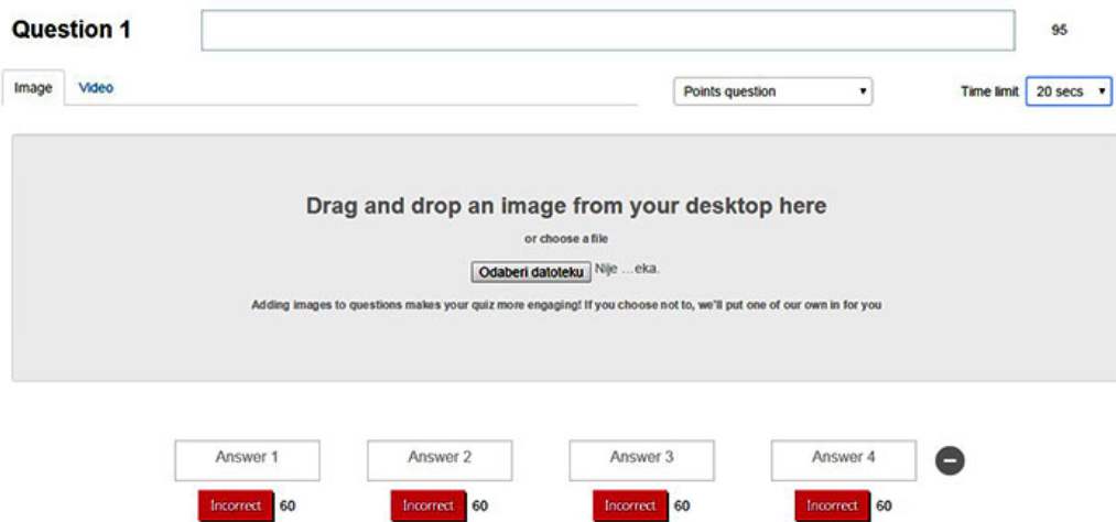 Za svako pitanje možete ponuditi 2 do 4 odgovora, od kojih jedan ili svi mogu biti točni. Uz pitanje možete dodati grafiku, glazbu ili video.