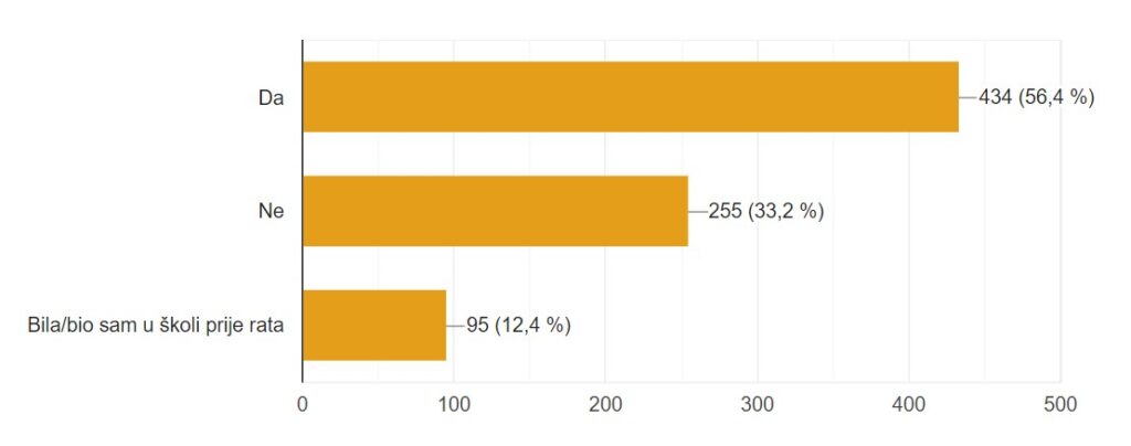 Od ukupnog broja čak 86,7% ispitanika trenutno sudjeluje u obrazovnom sustavu bilo kao učenici (70%) ili kao nastavnici (ukupno 16,7%).