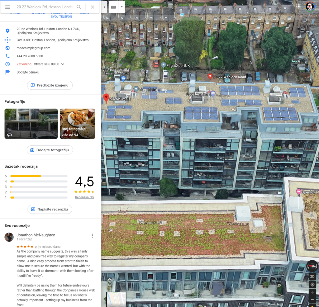 Ovaj treći link me odmah privukao jer se već po domeni vidi da se radi o službenoj obavijesti nekog organizacijskog dijela britanske vlade. Radi se o objavi za medije pod naslovom “High Court orders six more bogus multi-million pound companies into liquidation“. Vijest govori o likvidaciji lažnih tvrtki od kojih su dvije osnovane u razmaku od tri tjedna 2013. godine sa sjedištem na istoj adresi kao naša parfemska tvornica. Vrlo zanimljiva aktivnost u poslovno-stambenoj peterokatnici. Zanimljivo je da nam Google Maps i danas prikazuje da na toj istoj adresi postoji tvrtka koja se bavi poslom podrške pri registraciji tvrtki – MadeSimpleGroup.
