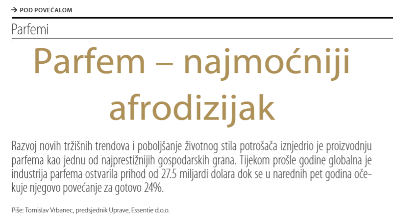 eMeđimurje: “Zašto sam se odlučio na pokretanje Hrvatske Parfemske Kuće? Iz dva vrlo jednostavna razloga. Prvi je taj da postoji ogromna potražnja na tržištu, a drugi da nešto takvo ne postoji u Hrvatskoj. Već godinama gledam kako Francuzi to uspješno rade. Zašto se i Hrvatska ne bi našla na listi poznatih parfemskih kuća? – upitao se.”