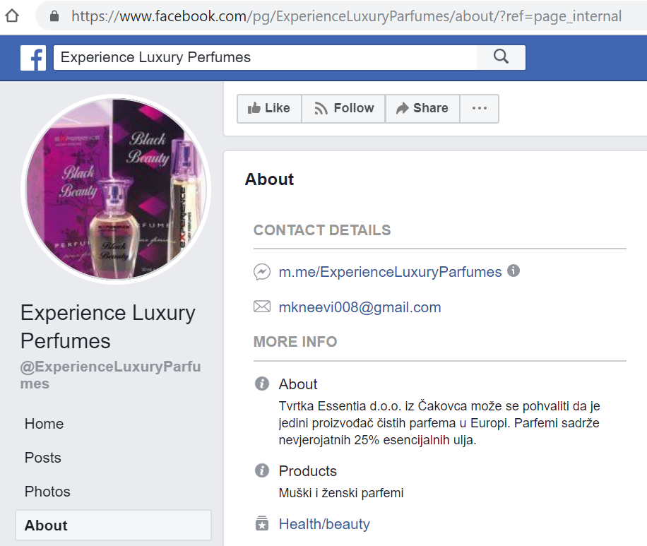 U članku kaže: “Experience parfemi sadrže čak 25% esencijalnih ulja, te prema svjetskoj klasifikaciji spadaju u čiste parfeme, dok je tvrtka Essentia d.o.o. jedini proizvođač čistih parfema u Europi.” Obzirom da ne spominje neki francuski ili drugi pogon vjerojatno su parfeme proizvodili na istoj adresi gdje je Essentia d.o.o. registrirana – Gundulićeva 34. Google Maps kaže da je to ovdje: