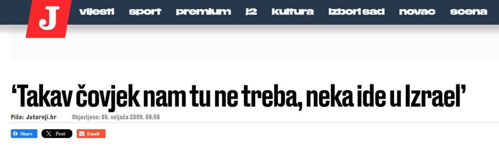 “Hajdarović certainly deserves all the death threats he has received, and he deserves to see those threats carried out. Croatia has no need for such a man; let him go to Israel if he loves Jews and their money. The national revolution, which awaits us in 10 to 15 years, will sweep from the Croatian stage all those involved in spreading disinformation and discrediting Croatia during the period from 1945 until the founding of the new NDH. It is highly probable that Hajdarović will find himself among those gentlemen who will be hanging from lampposts across Croatia!”