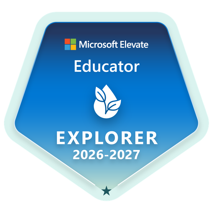 Earners of this badge are educators who have been selected as a Microsoft Elevate Educator – Explorer for 2025-2026. Explorers are recognized educators who have committed to start their professional development journey with Microsoft tools and AI literacy. They gain access to exclusive webinars, curated resources, a community newsletter, and receive special recognition from Microsoft Elevate.