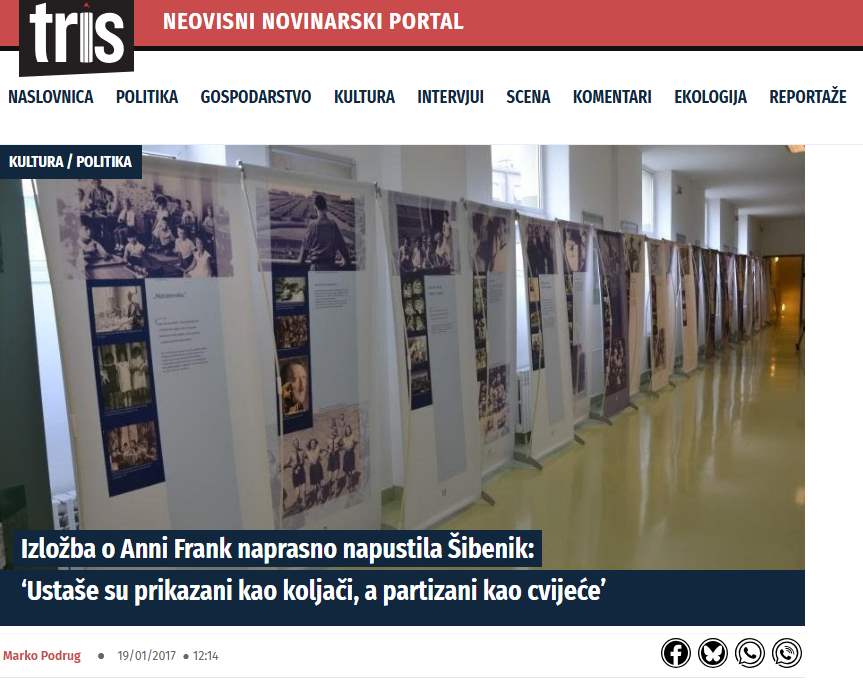 Međunarodna izložba “Anne Frank – povijest za sadašnjost”, u organizaciji Hrvatske edukacijske i razvojne mreže za evoluciju sporazumijevanja (HERMES), koja