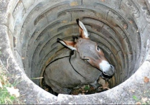 Narodna priča prati starog magarca koji upadne u duboki zdenac, a vlasnik ga, umjesto spašavanja, odluči živog zakopati bacajući zemlju